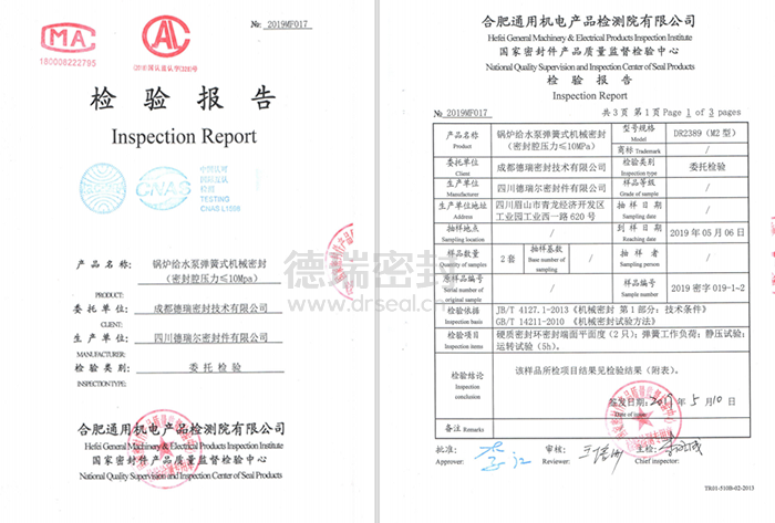 鍋爐給水泵彈簧式機(jī)械密封檢驗報告