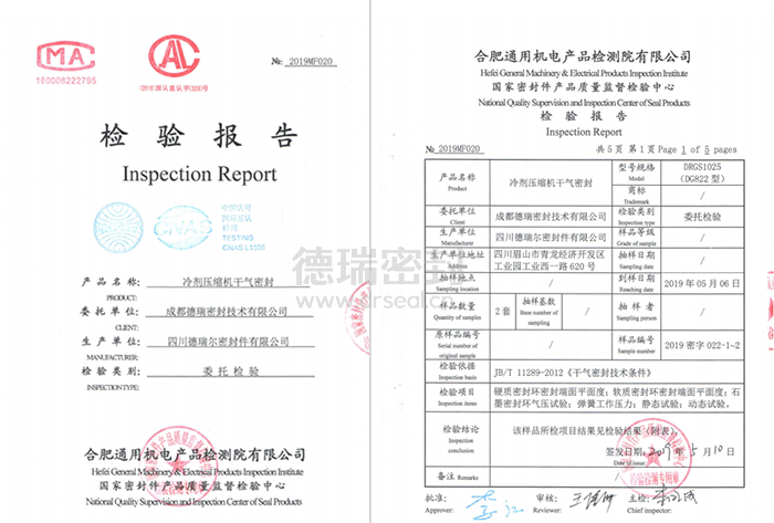 冷劑壓縮機(jī)干氣密封檢驗報告