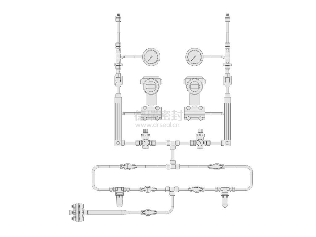依據(jù)API682-Plan74標(biāo)準(zhǔn)設(shè)計,本系統(tǒng)與干氣密封配套使用,為干氣密封提供干凈、壓力穩(wěn)定的氣源,保證干氣密封的穩(wěn)定運行。系統(tǒng)主要包含管路接頭、球閥、過濾器、減壓閥、壓力表、壓力變送器、流量計、單向閥等部件。