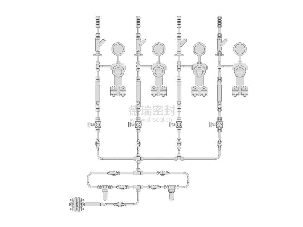 依據API682-Plan74標準設計,本系統(tǒng)與干氣密封配套使用,為干氣密封提供干凈、壓力穩(wěn)定的氣源,保證干氣密封的穩(wěn)定運行。系統(tǒng)主要包含管路接頭、球閥、過濾器、減壓閥、壓力表、壓力變送器、流量計、單向閥等部件。