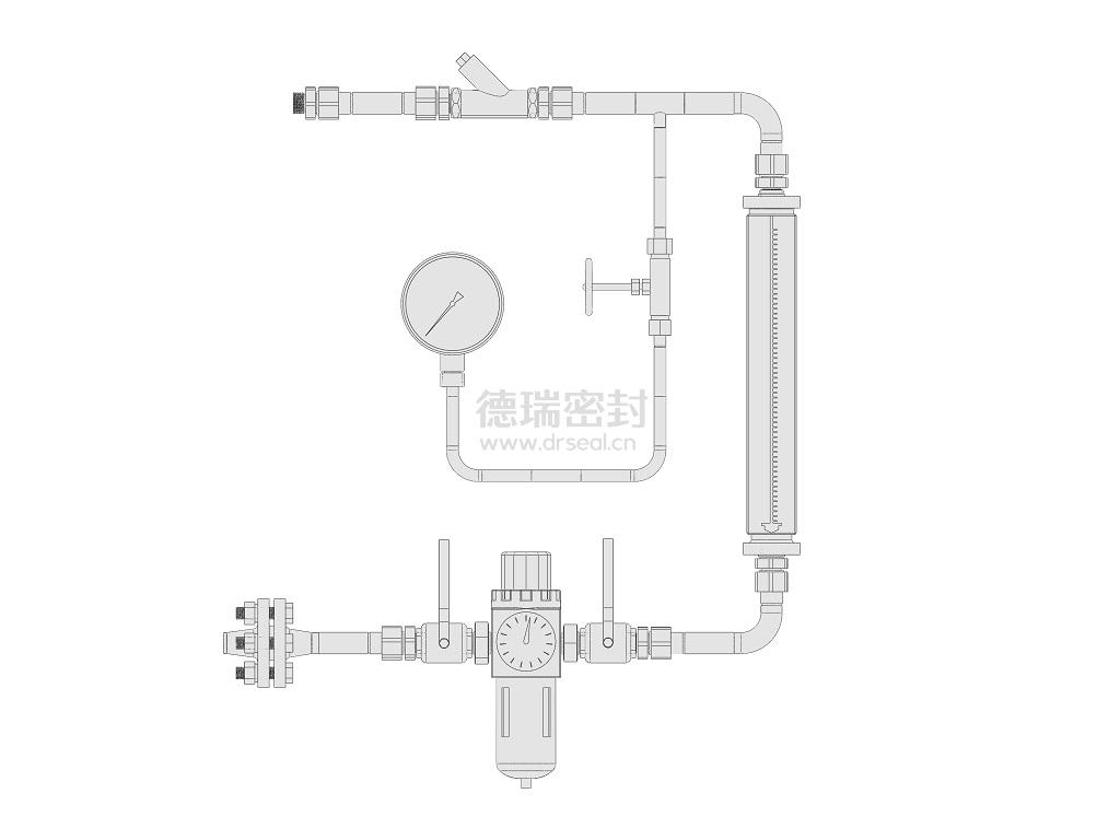 依據(jù)API682-Plan74標(biāo)準(zhǔn)設(shè)計(jì),本系統(tǒng)與浮環(huán)密封配套使用,為浮環(huán)密封提供干凈、壓力穩(wěn)定的氣源,保證浮環(huán)密封的穩(wěn)定運(yùn)行。系統(tǒng)主要包含管路接頭、球閥、過濾減壓閥、壓力表、流量計(jì)、單向閥等部件。