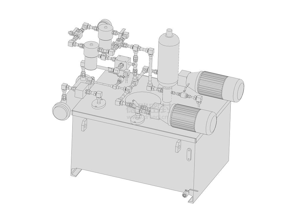 依據(jù)API682-Plan54標(biāo)準(zhǔn)設(shè)計(jì),本系統(tǒng)為潤(rùn)滑油控制系統(tǒng),能為密封提供清潔的隔離液,改善密封運(yùn)行環(huán)境。系統(tǒng)主要包含管路接頭、箱體、蓄能器、冷卻器、泵、過(guò)濾器、壓力表、球閥、溢流閥、截止閥、單向閥等部件。